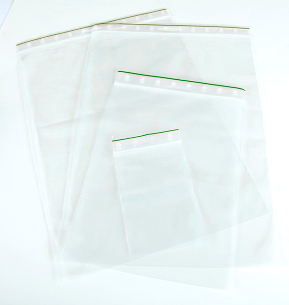 Påsar med kraftig blixtlåsförslutning. Utstansat hål över förslutningen för upphängning. Tjocklek: 50 mikron.
