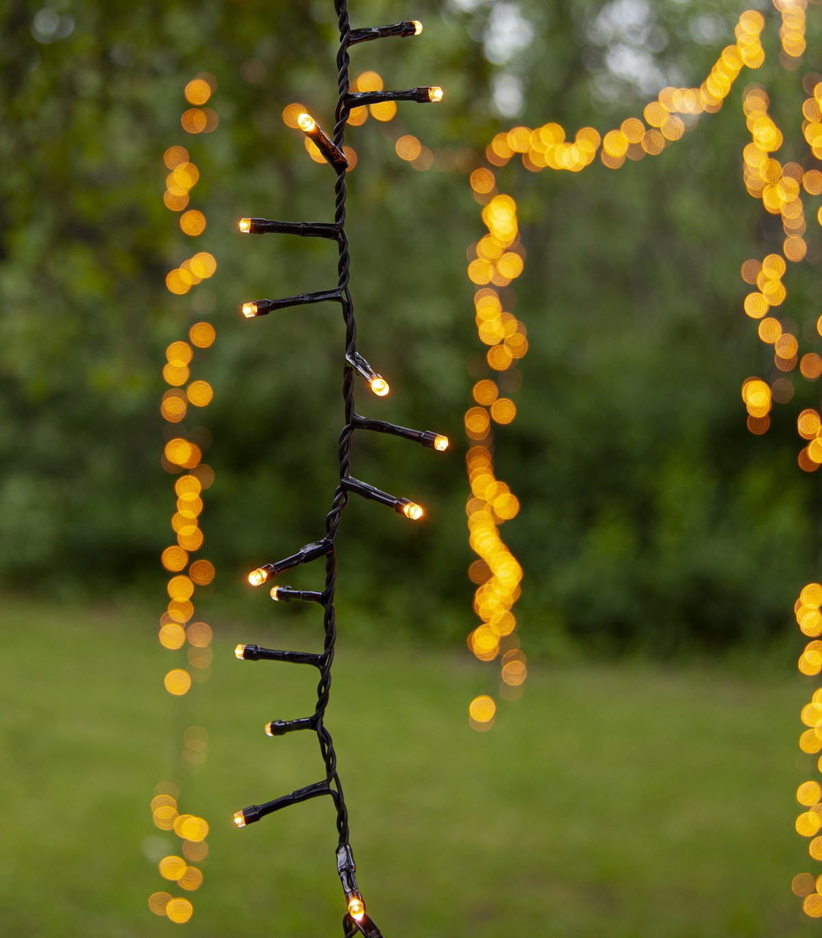 Ljusslinga med LED-lampor med vackert gyllene ljussken. Perfekt för din trädgård. Extra varmvit färg.