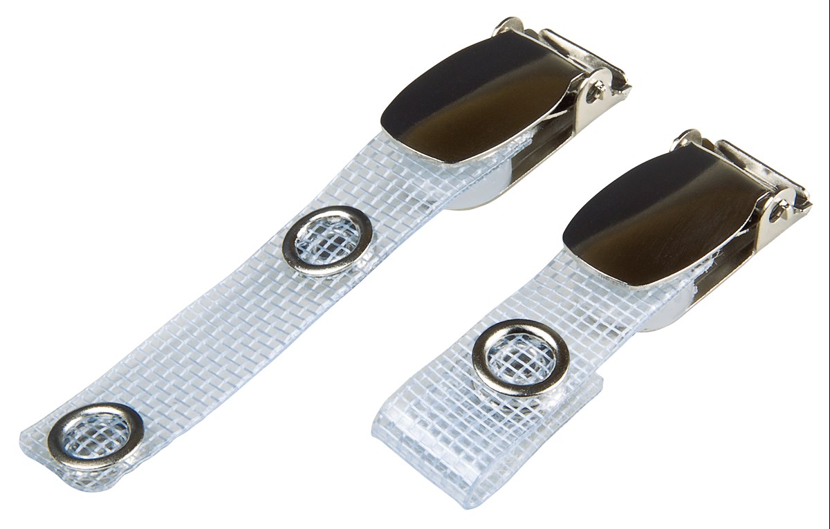Ett hängselclip på armerat PVC-band med knappar i metall. Strippen träs enkelt genom kort eller korthållare och knäpps ihop. 25 st/förp.