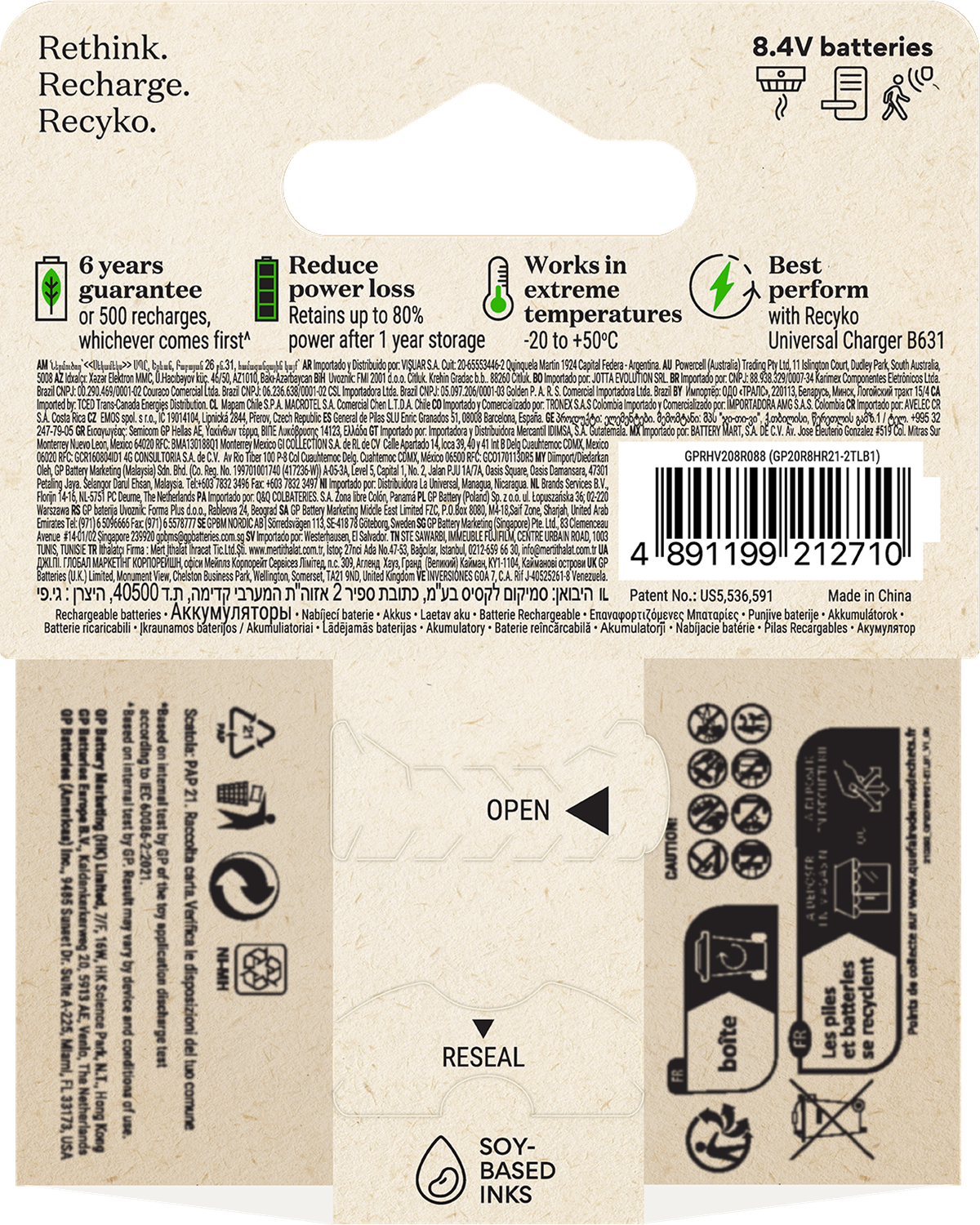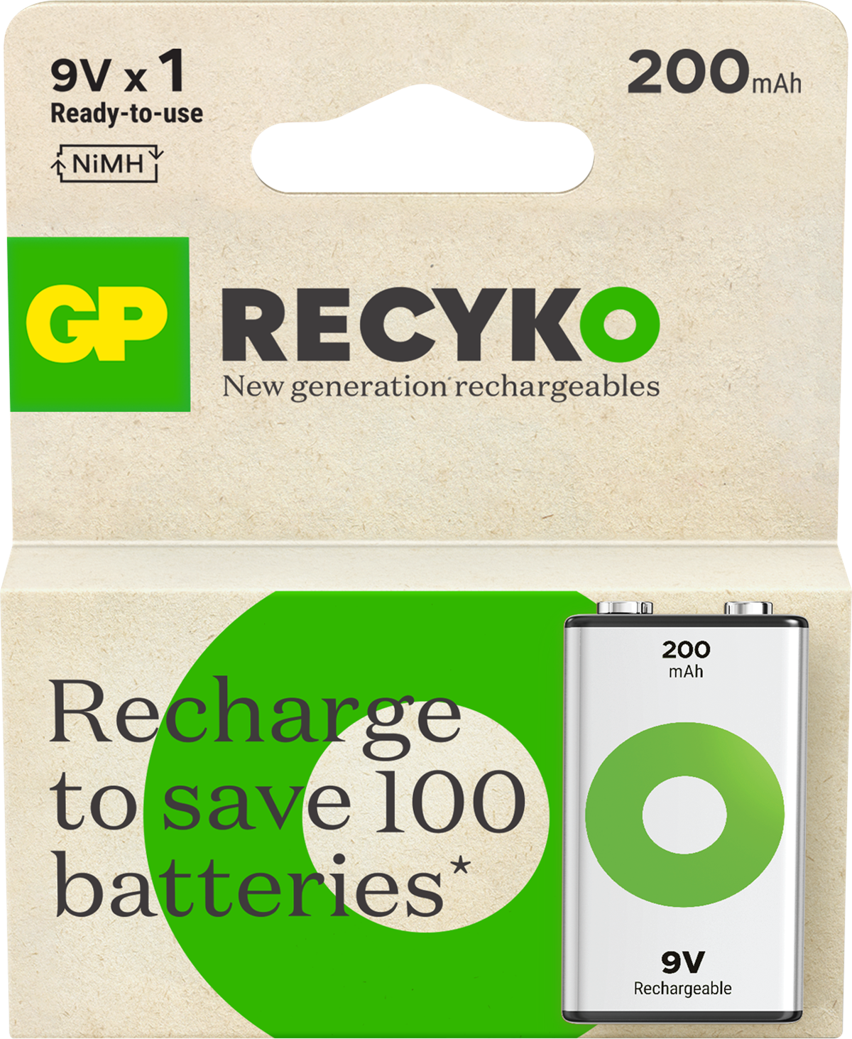 GP Recyko 9V-Batteri 200mAh är ett kraftfullt laddningsbart batteri som är utvecklat för ditt vardagliga användande. De är laddade vid köp och redo att användas direkt ur förpackningen. Till skillnad från engångsbatterier så kan Recyko användas vid låga temperaturer, ända ned till - 20°C, pålitlig prestanda i extrema temperaturer. Över 90% av batteriet, inklusive förpackning är återvinningsbart.