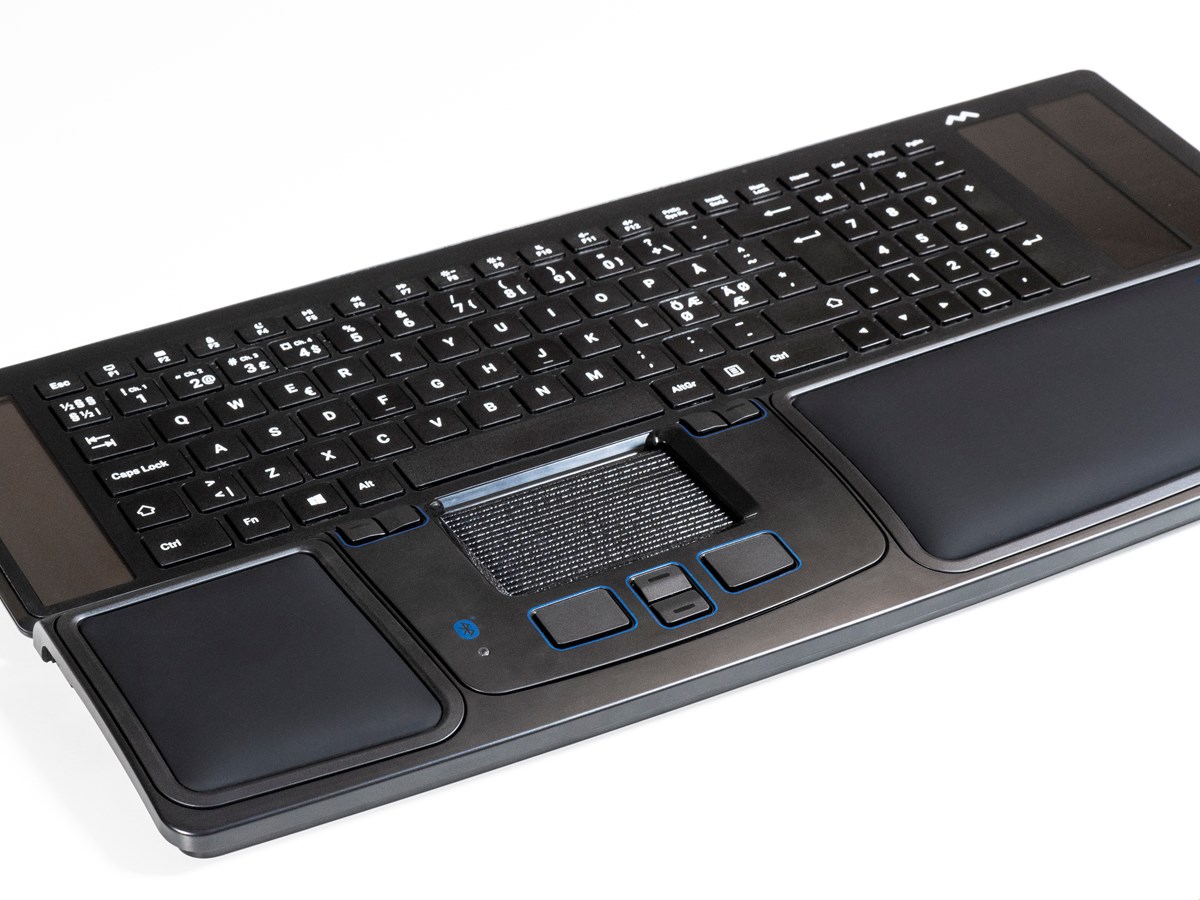 Med 8 programmerbara knappar har du betydligt fler möjligheter att få din Mousetrapper precis som du vill ha den. Med Prime har du möjlighet att jobba trådlöst via Bluetooth – givetvis kan du använda en USB-kabel för anslutning om du föredrar det. Ladda ner appen MT Keys så kan du enkelt ändra alla knappars funktion, lägga in standardtexter, användarprofiler och mycket mer. MT Keys finns för både Mac och PC. Handlovsstöden på Prime är avtorkningsbara och utbytbara vilket gör produkten lätt att hålla fräsch. Ett utvikbart tangentbordsunderlägg ingår som gör att den passar lika väl till de nya supertunna tangentborden som till högre standardtangentbord.