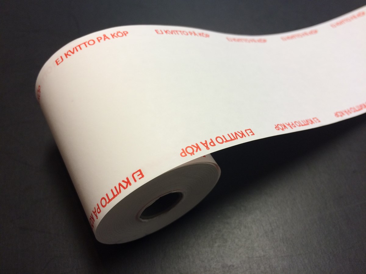 Uppfyller Skatteverkets föreskrifter för användning av kassaregister. För betalkortsterminaler och andra skrivare än kvittoskrivare om utskriften har ett innehåll som kan uppfattas som ett kvitto. 48 g termopapper. 57 mm x 25 m. 5 st/förp., 60 st/kartong