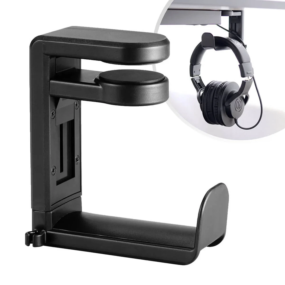 Hörlursstativet tar lite utrymme, det är perfekt för att hålla alla typer av hörlurar och headset. Den har ett litet clips som håller din hörlursledning snygg och organiserad, eller också kan användas för USB-kablar och laddningskablar. Det kan också användas för att hålla spelkontroller, kablar eller andra prylar. (Max totalvikt 1 kg).