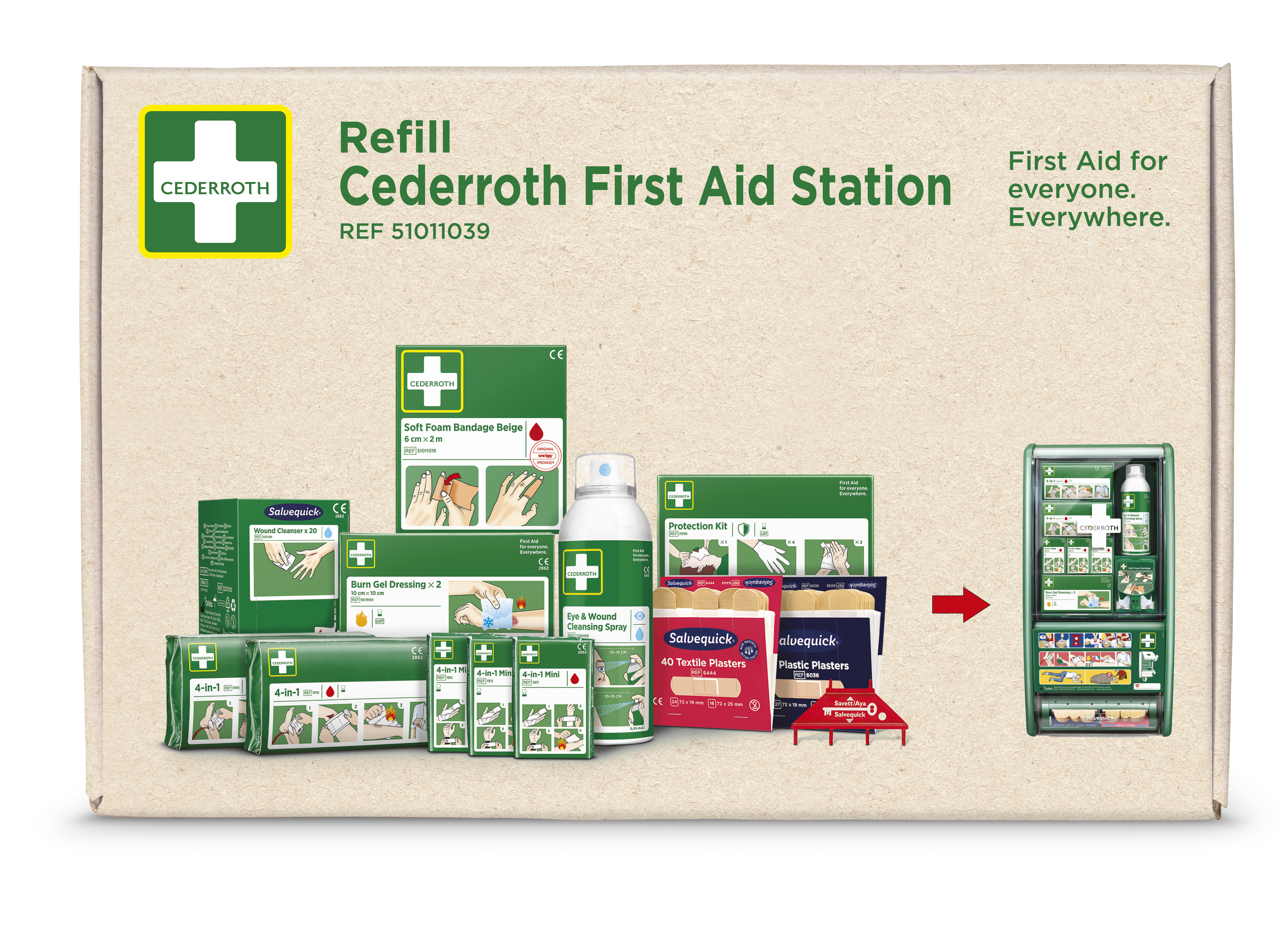Första Hjälpen-Station som kan hantera flera typer av skador och dessutom enkelt anpassas efter olika vårdbehov. Med en komplett Första Hjälpen-utrustning på din arbetsplats hoppas vi att fler ska kunna och våga hjälpa när olyckan är framme.