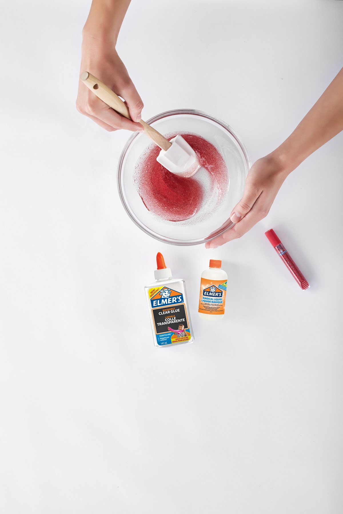 Slimkit med original limmet - Elmers! Enkelt att använda, blanda bara lim, glitterlim och sedan Magic Liquid. Innehåller 2 flaskor lim, 2 flaskor Magic Liquid samt 4 tuber glitterlim (röd, grön, gul och blå).