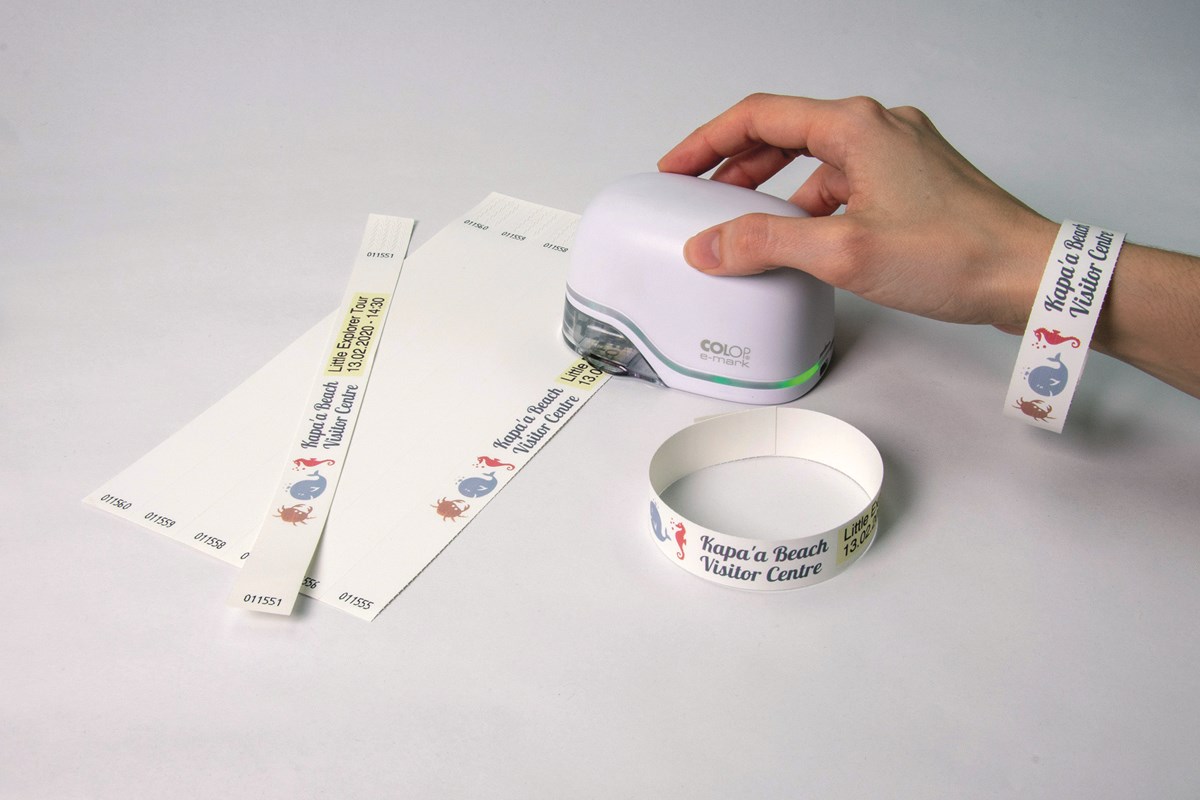 Armband perfekta för event, fester och andra tillfällen då de är enkla att trycka på med e-mark. Det speciella materialet gör bandet och trycket tåligt. Varje band är 19 mm x 250 mm och levereras på ark med enkel perforering för att separera banden. 100 band/förp.