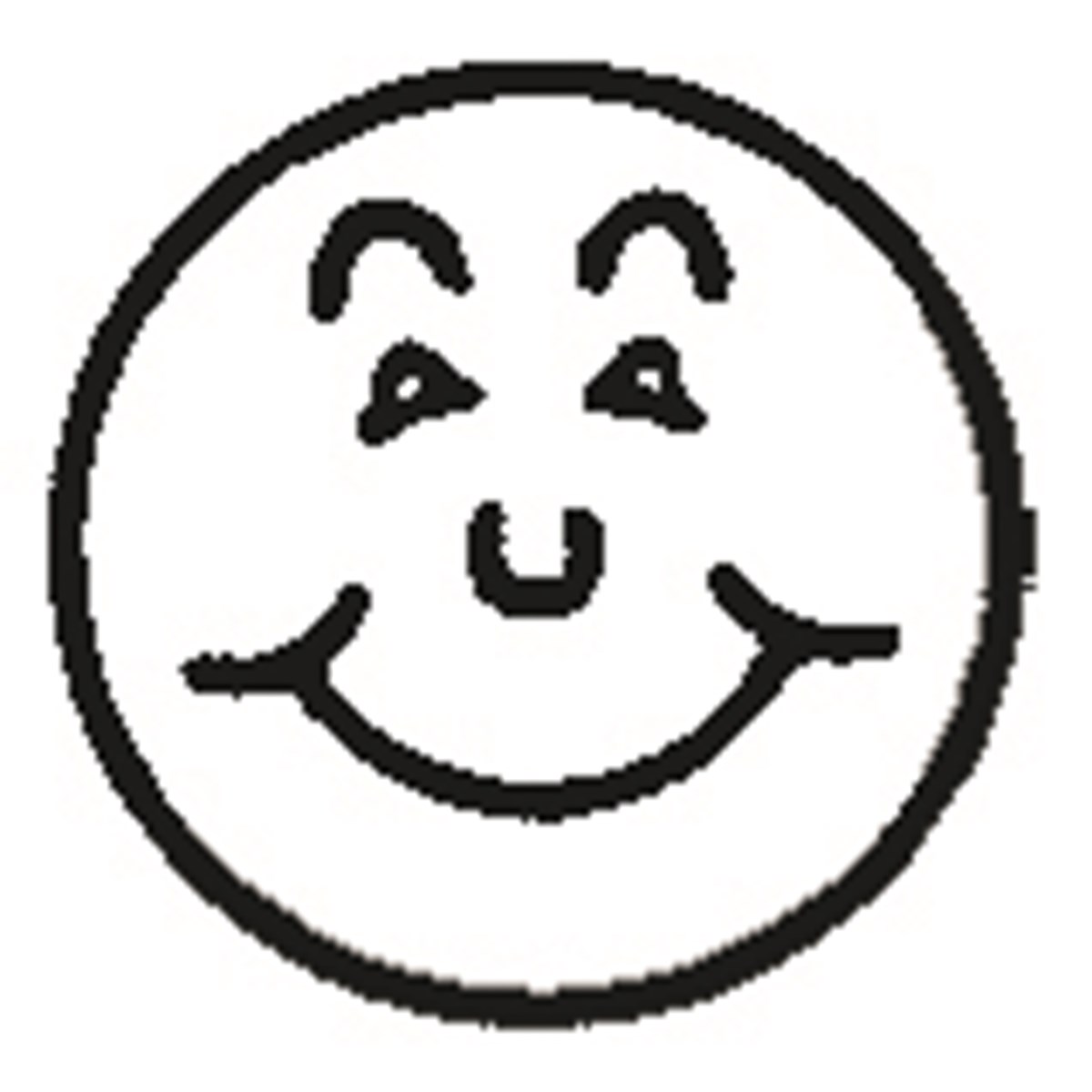 Kontrollstämpel med standardtext och inbyggd färgdyna med svart färg. Motiv: "Glad gubbe". Ø12 mm.