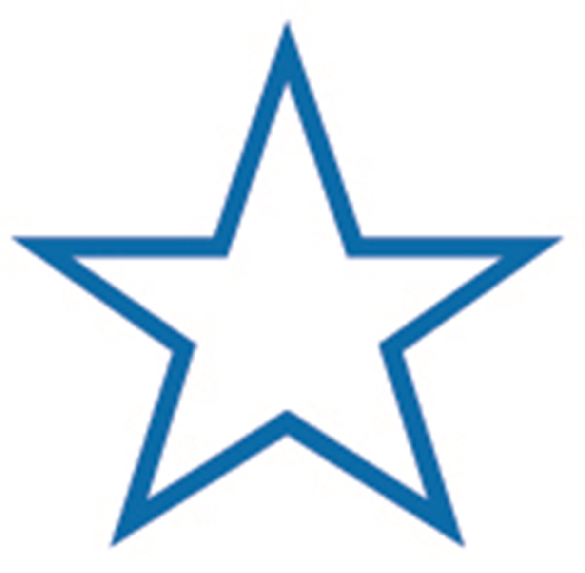 Kontrollstämpel med standardtext och inbyggd färgdyna med blå färg. Motiv: "Stjärna". Ø12 mm.