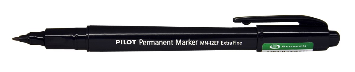 Pilot Begreen Extra Fine Marker är en märkpenna som kan användas på i stort sett vilken yta som helst och som har en extra tunn spets. För permanent märkning på papper, metall, glas, plast, trä och kartong. Snabbtorkande bläck. Vattenfast/permanent bläck. Konisk spets. 3-parts certifierad enligt Eco Mark som baseras på ISO 14024.