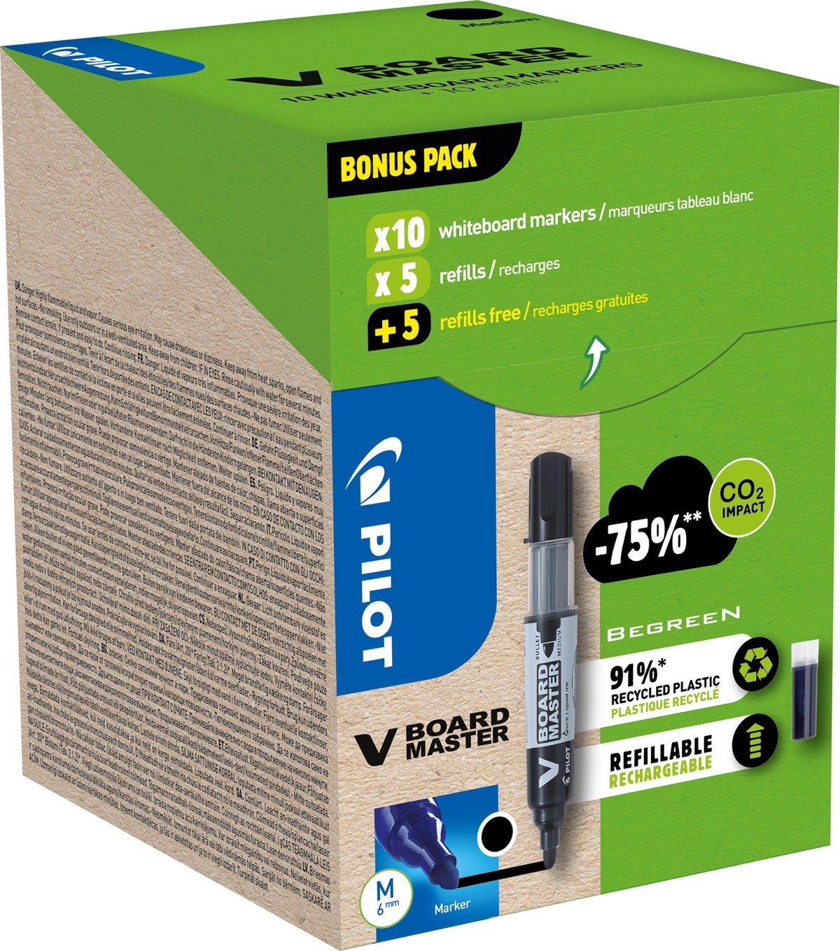 Whiteboardpenna/refill Pilot V-Board Master Greenpack svart 10+10/fp