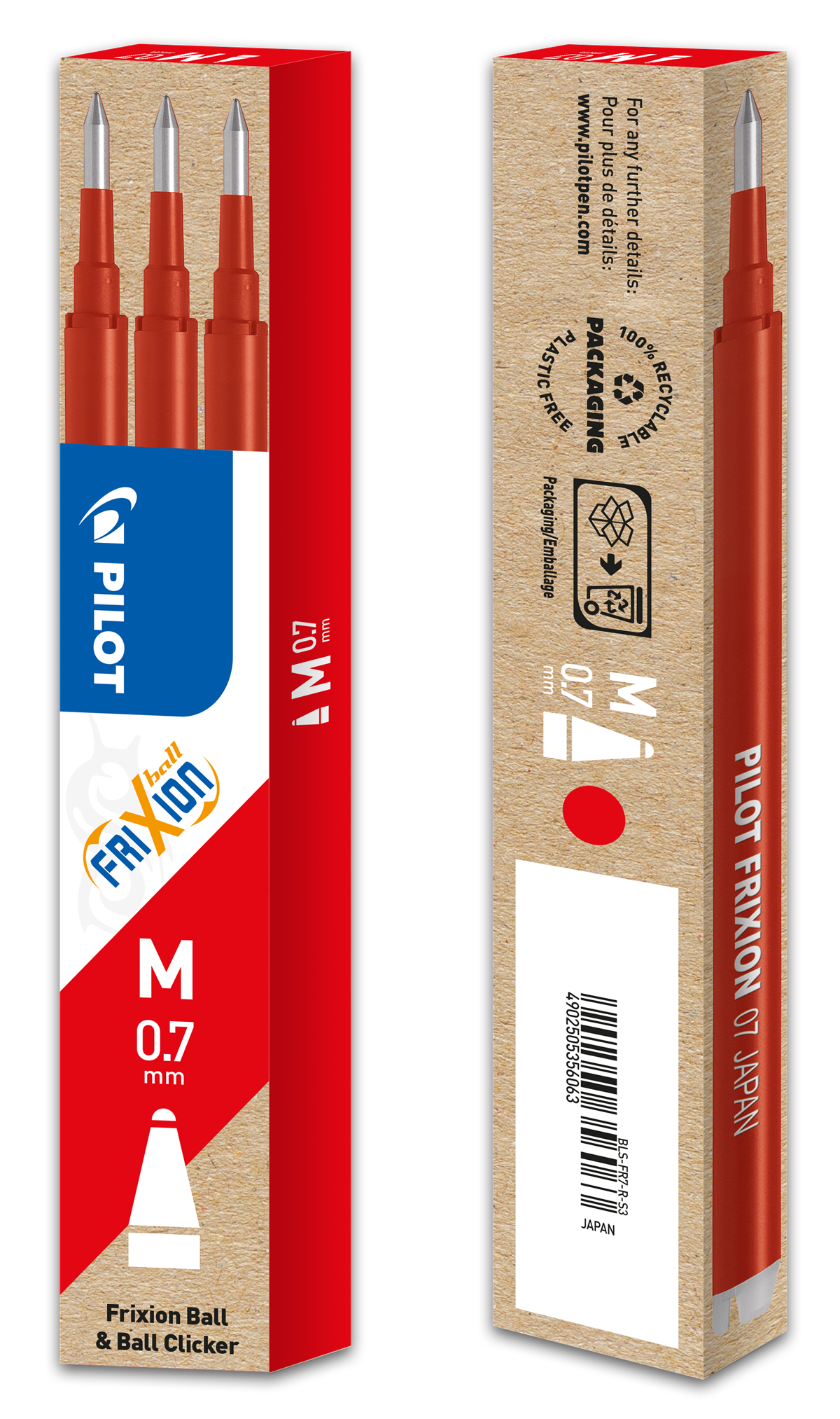Kulpatron Pilot Frixion 0,7 mm röd 3/fp