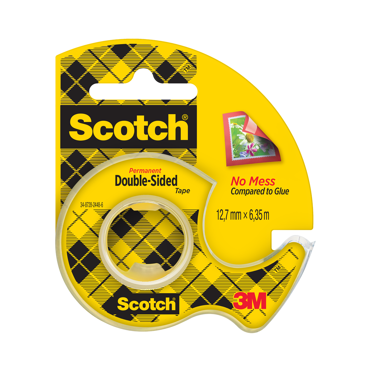 Scotch® Dubbelhäftande tejp är belagd med permanent häftämne på båda sidor och håller ihop saker utan att synas. Den här dubbelsidiga tejpen är ett idealiskt kladdfritt alternativ för att fästa lättare material, snabba lagningar eller tillägg till dina projekt. Scotch® Dubbelhäftande tejp är kraftig, håller länge och är fotosäker, och den torkar inte ut eller gulnar med tiden.