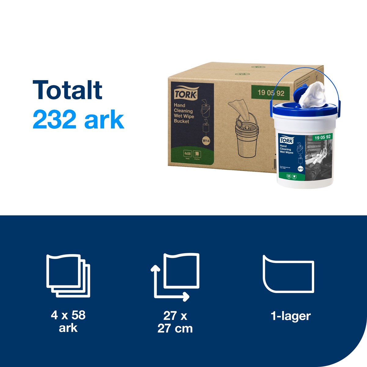 Att inte ha tillgång till vatten kan vara besvärligt när det kommer till handhygien. Tack vare dessa smidiga våtdukar för handrengöring kan du hålla dina händer rena, var du än befinner dig. Våtdukarna med professionell kvalitet hanterar effektivt smuts utan att dina händer blir lidande – den oparfymerade formeln är framtagen för att vara skonsam mot huden. Använd våtdukarna tillsammans med vår bärbara hink för enkel åtkomst, vilket ökar personalens effektivitet under arbetsdagen. Parfymfri och skonsam mot huden. Mått: 27 x 27 cm. 58 st/hink.