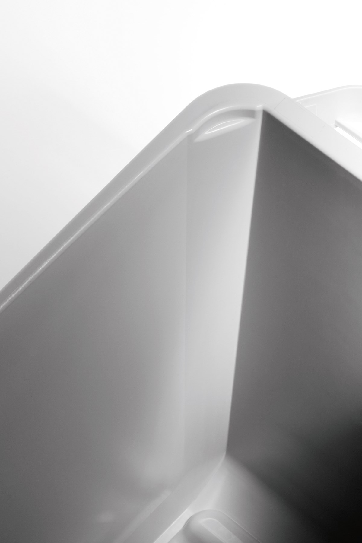 Rektangulär, 60-liters tunna av polypropen med ergonomiskt bärhandtag. Praktisk även för förvaring och transport av råmaterial inom handel och industri. Greppvänlig undersida förenklar lyft och tömning. Livsmedelsgodkänd. Klämspår i hörnen gör att sopsäcken sitter säkert. Mått (H x B x D): 600 x 590 x 282 mm. Lock köps separat.