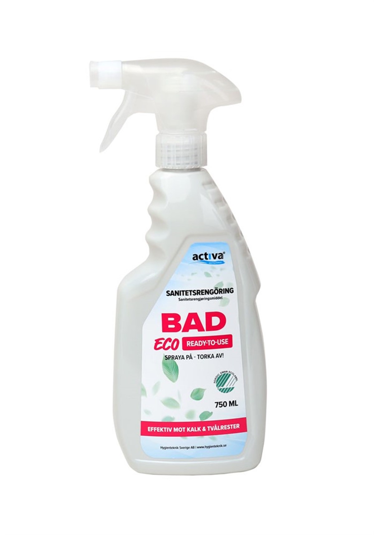 Svanenmärkt badrumsrengöring som är effektiv mot kalk och tvålrester. Spraya på och torka av med en duk. Vid hårt smutsade ytor, låt verka en stund innan avtorkning. Eftertorka med vatten på ytor som kommer i kontakt med livsmedel. Undvik kontakt med trä, aluminium eller porösa ytor.