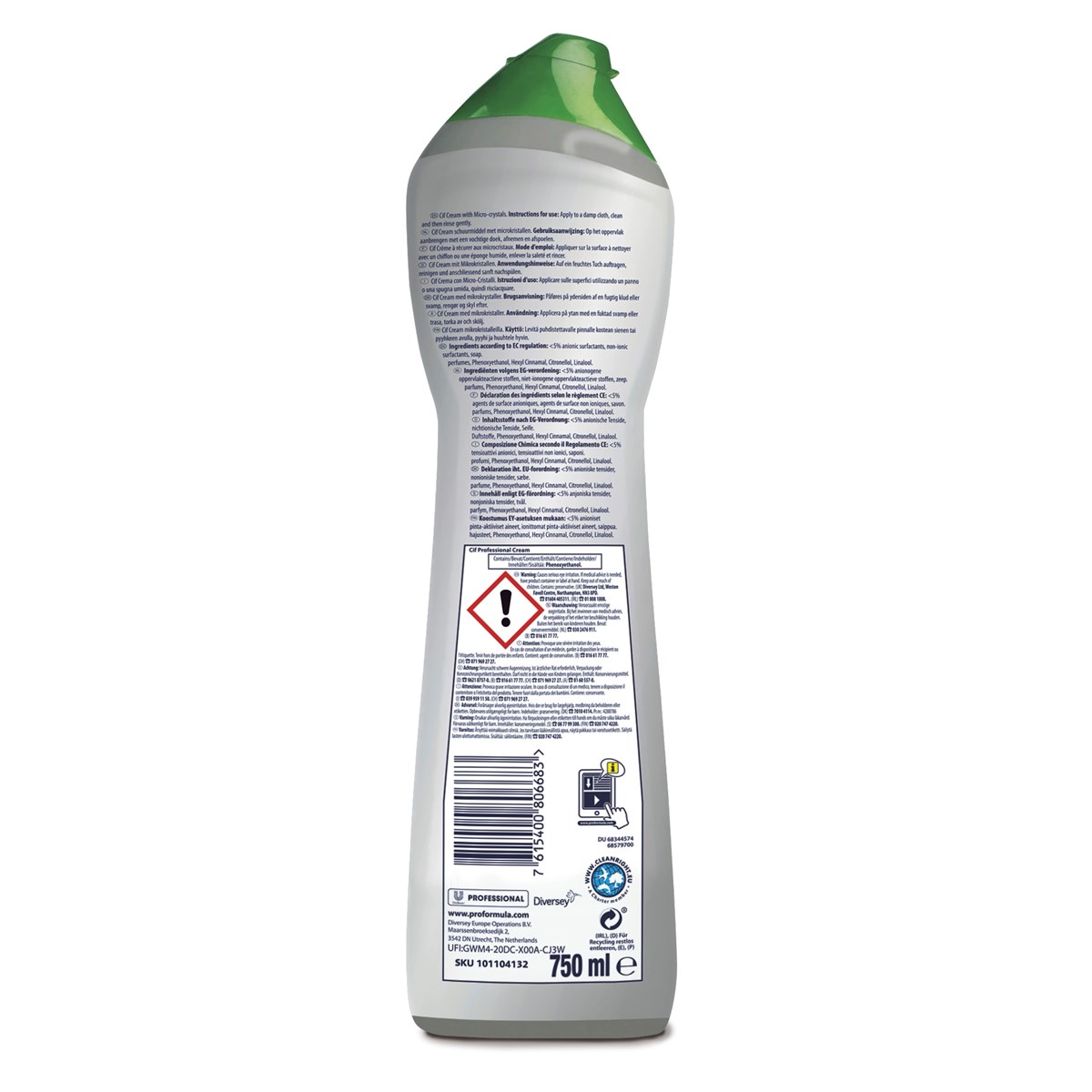 Cif Professional Cream är en mångsidig rengöringskräm med miljontals naturliga rengöringspartiklar som ger utmärkta resultat på svåra fläckar utan att skada känsliga ytor som emalj och lack. Den unika formulan rengör på djupet för att ge ytorna ett nytt liv. Den kan användas som köksrengöringsmedel för att rengöra hällar, diskbänkar och kökskakel samt som badrumsrengöringsmedel för att rengöra badkar, diskbänkar och badrumskakel. Lämplig för alla hårda ytor inklusive känsliga ytor som emalj och lack. Ger ett vackert resultat när man tar itu med intorkade matrester, hårt fett, tvålskum och vattenmärken.