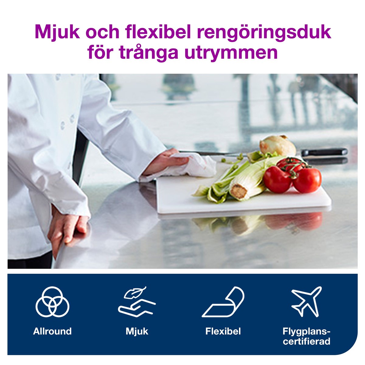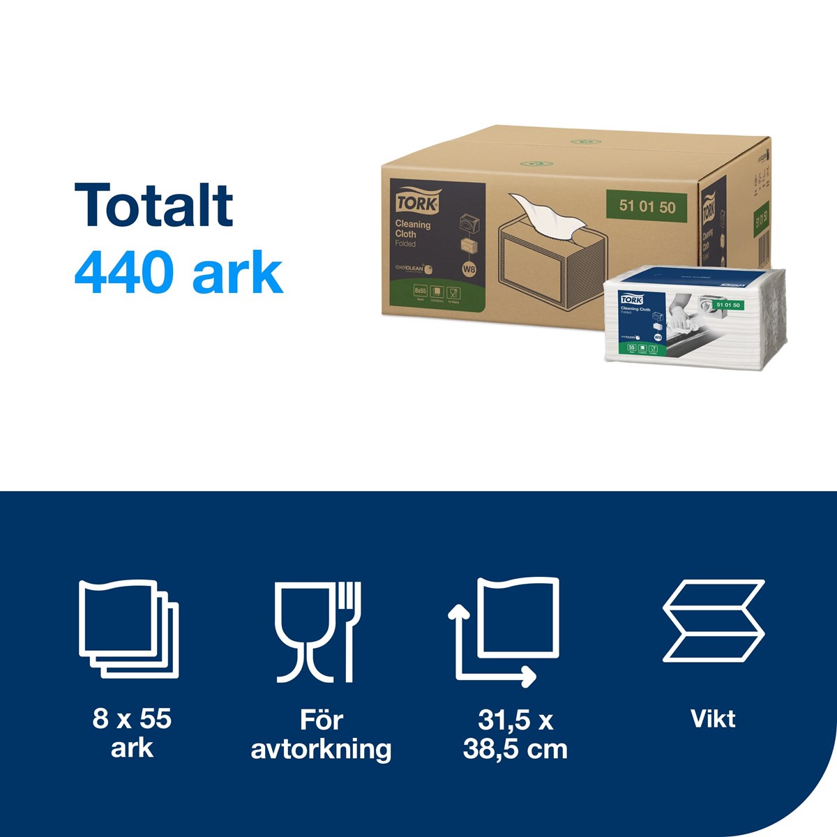 En mjuk, följsam och tunnare rengöringsduk som snabbt suger upp vätska och olja. Perfekt för lättare rengöring. Den mjuka strukturen gör att duken inte repar ytorna som rengörs. Med excelCLEAN som ger resultat i toppklass. Mått : 38,5 x 32 cm. 55 vita dukar/förp. 440 dukar/kartong.