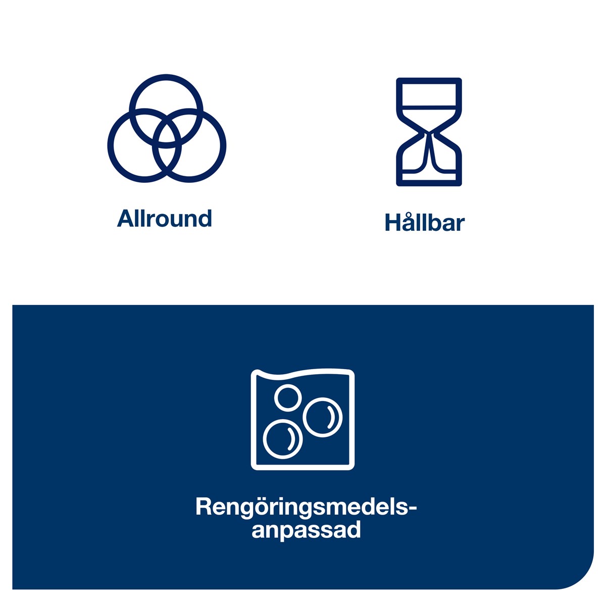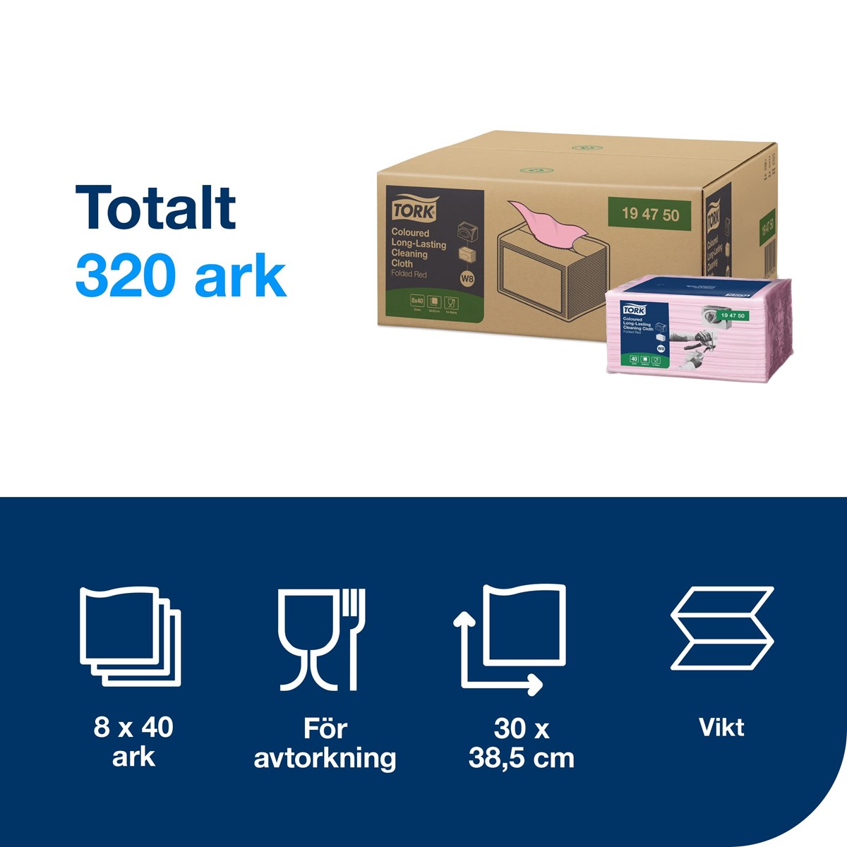 Allround-kvalitet som kan hantera allmän avtorkning Stark och absorberande Tillgänglig i fyra färger för att förhindra korskontaminering Lämplig för användning med de flesta rengöringsprodukter