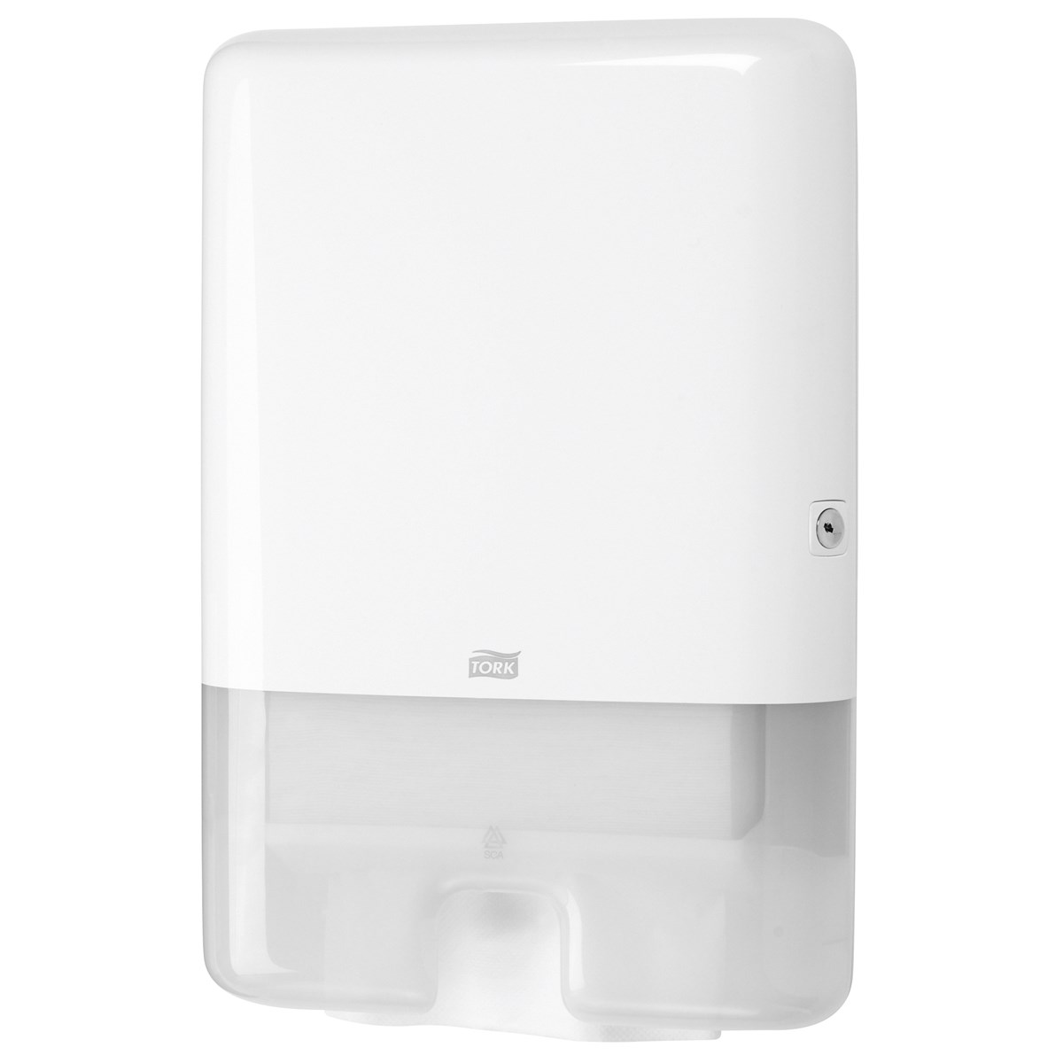 Hygienisk utmatning av en handduk i taget Enkel påfyllning, enkelt underhåll För toalettutrymmen med låg och medelhög besöksfrekvens Förborrat borrhål för enkel väggmontering Håller max 2,5 buntar