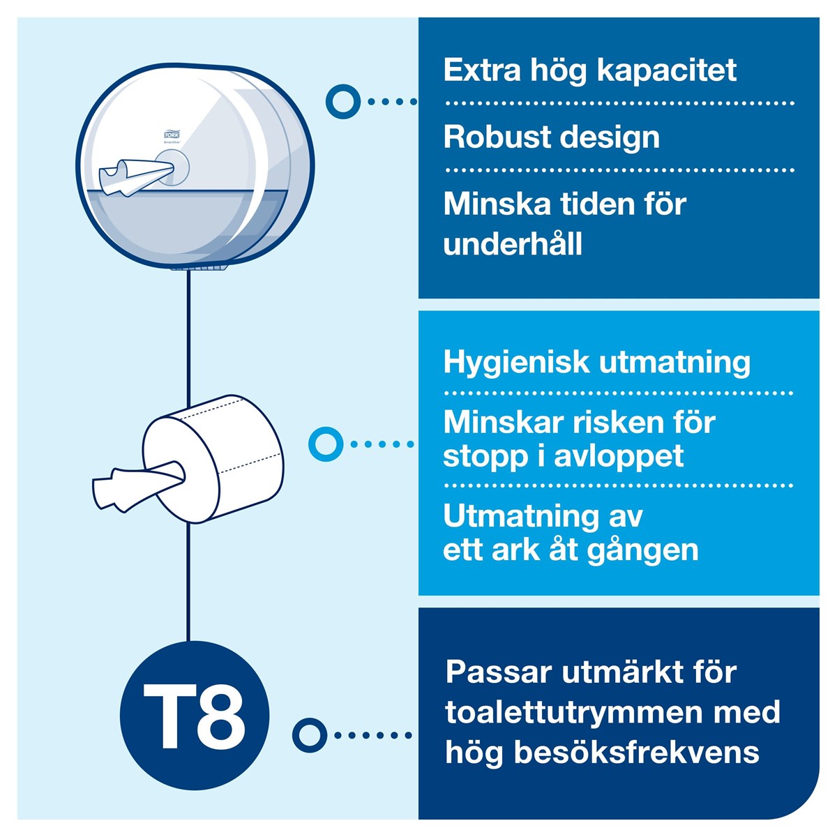 Robust plastdispenser som ger ett ark åt gången vilket minskar förbrukningen med upp till 40 %. Hygienisk - man vidrör bara det ark som man använder. Extra hög kapacitet, räcker till många besökare. Mått: (H x B x D) 26,9 x 26,9 x 15,6 cm.