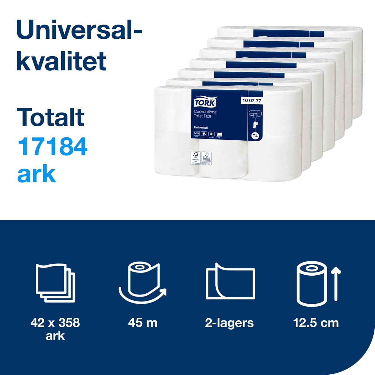 Toalettpapper Tork T4 Universal 2-lagers 42/fp