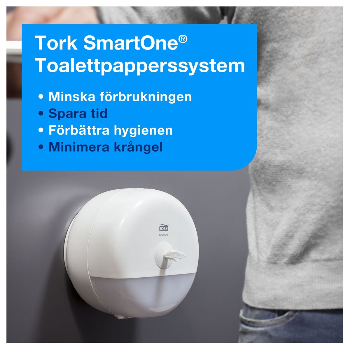 2-lags vitt toalettpapper av hög kvalitet. Ett unikt toalettpapper i och med att det matar ut ett hygieniskt ark i taget, vilket hjälper till att minska förbrukningen med upp till 40% jämfört med traditionella jumbodispensrar. Snabb upplösning av pappret – låg risk för stopp i avloppet. Grå dekor. 207 m/rulle. 6 rullar/förp.